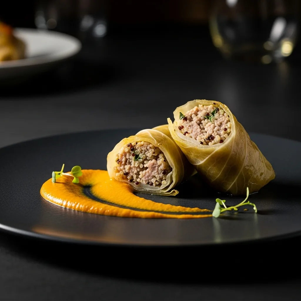 🍽️ Recipe: Blanch 4 cabbage leaves (120g). Fill with mix of 80g turkey mince, 40g cooked quinoa, and herbs. Bake at 180°C for 25 mins. Serve with tomato-free sauce (blended carrots, lemon).