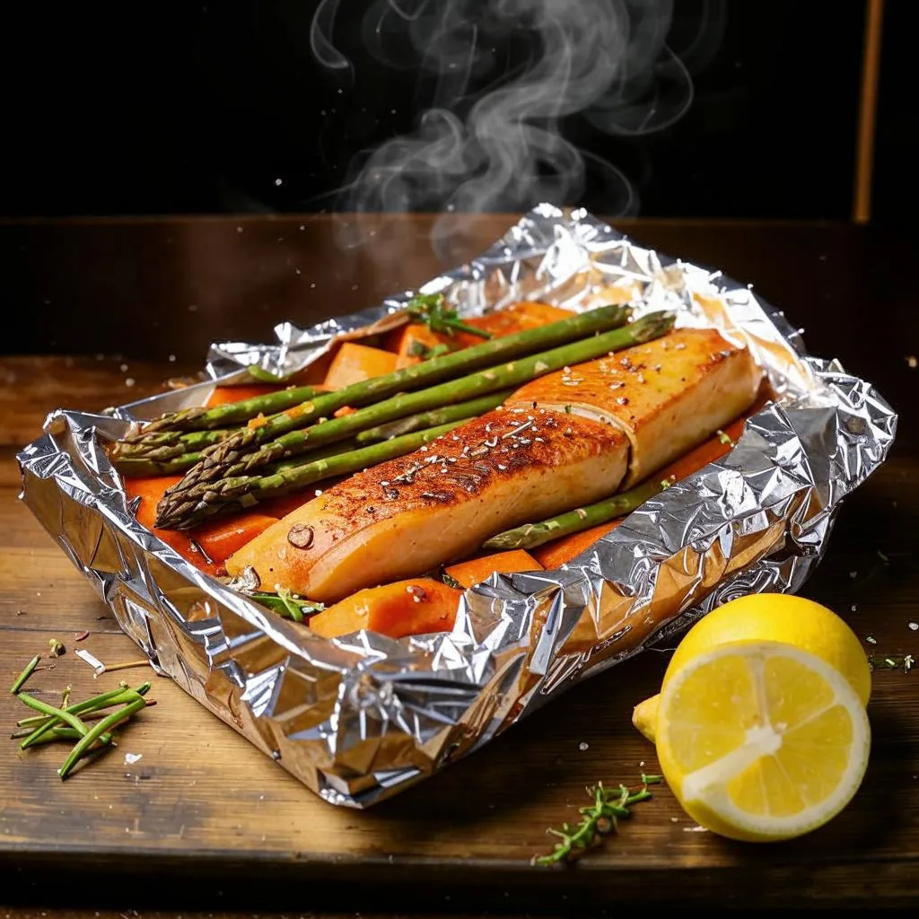 🍽️ Recipe: Baked Sweet Potato & Cod Packets 1. Slice 150g sweet potato. 2. Place with 100g cod, 5 asparagus spears, lemon slices in foil. 3. Drizzle 1 tsp olive oil, add thyme. Bake 25min at 190°C.
