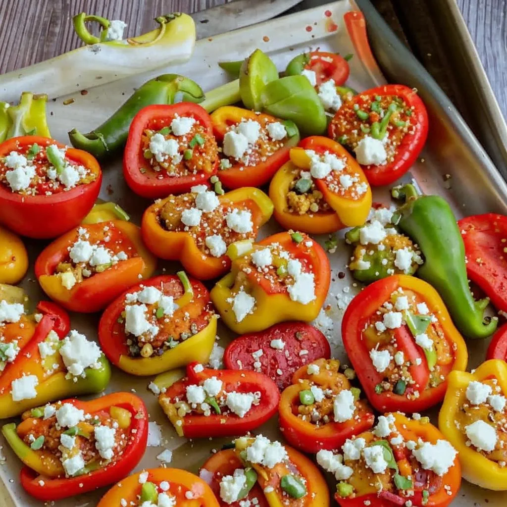 🍽️ Recipe: Quinoa-Stuffed Peppers 1. Roast 2 halved bell peppers (15 mins). 2. Mix ½ cup cooked quinoa with 50g diced zucchini, 5 halved cherry tomatoes, 20g crumbled feta. 3. Stuff peppers, drizzle 1 tsp olive oil, bake 20 mins at 180°C. Garnish with fresh basil.